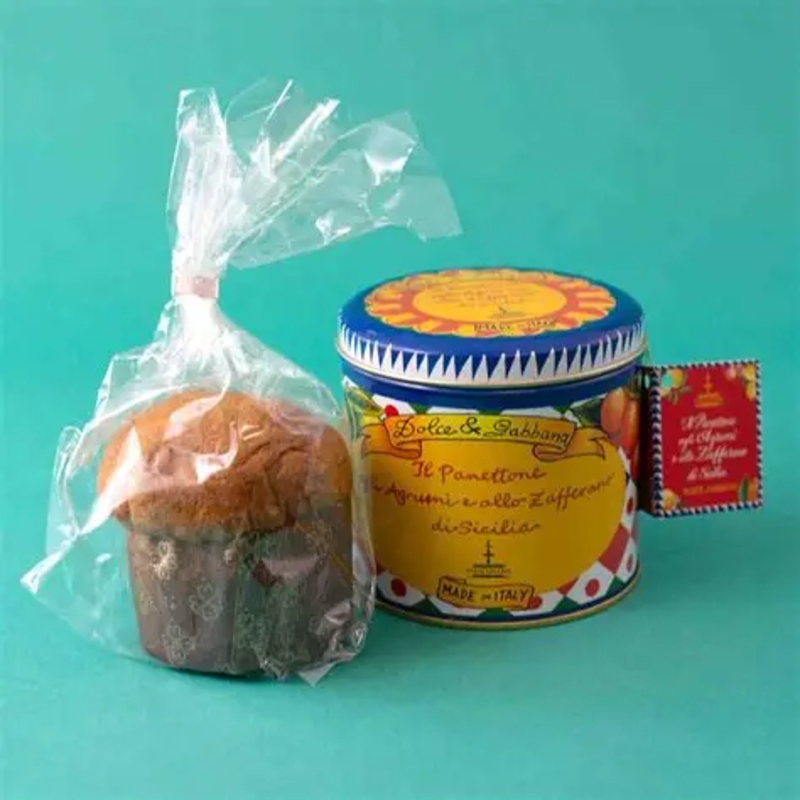 Panettone with Sicilian fruits, without raisins. Baked confectionery product with citrus and saffron from Sicily.